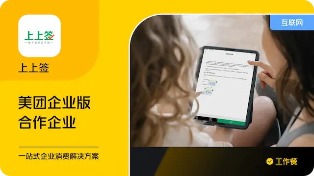 2021年底,美团企业版与电子签约平台上上签在企业用餐上达成了合作,让员工用餐从线下支付、开票报销转变为线上预订、企业支付,实现了企业用餐消费场景的数字化升级。